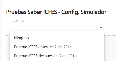 En el modulo de pruebas se configura los porcentajes de las areas de conocomiento presentadas en las pruebas saber 11, para el funcionamiento del simulador puntajes ubicado en el portal de inscripciones en linea, el modulo permite configurar pruebas ICFES antes del 2014-II y pruebas ICFES despúes del 2014-II.