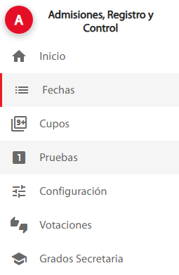 Cupos:Permite visualizar y editar los cupos disponibles para el ingreso de los aspirantes de cada programa académico.