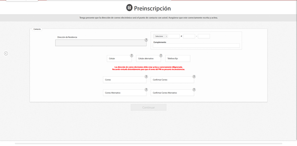 En esta sección el sistema solicita los datos de domicilio y de contacto del aspirante. Esta información es utilizada por la Universidad para comunicarse con el aspirante durante las diferentes etapas del proceso de admisión. Los campos requeridos son: