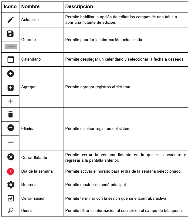 . Convención de botones.