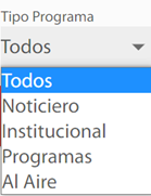 Esta lista de opciones permite clasificar la información que se encuentra activa o no para visualización en el portal de la emisora institucional.