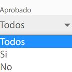 Esta lista de opciones permite clasificar y mostrar la información según el estado aprobado.
