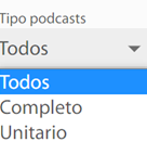 Esta lista de opciones permite filtrar los podcasts según su duración (completos: audios de más de 20 minutos, unitario: audios de menos de 5minutos).