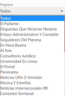 Esta lista de opciones permite filtrar los podcasts según al programa al que pertenezcan.