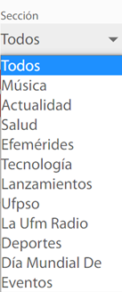 Esta lista de opciones permite condicionar las noticias según la sección a la que pertenezcan.