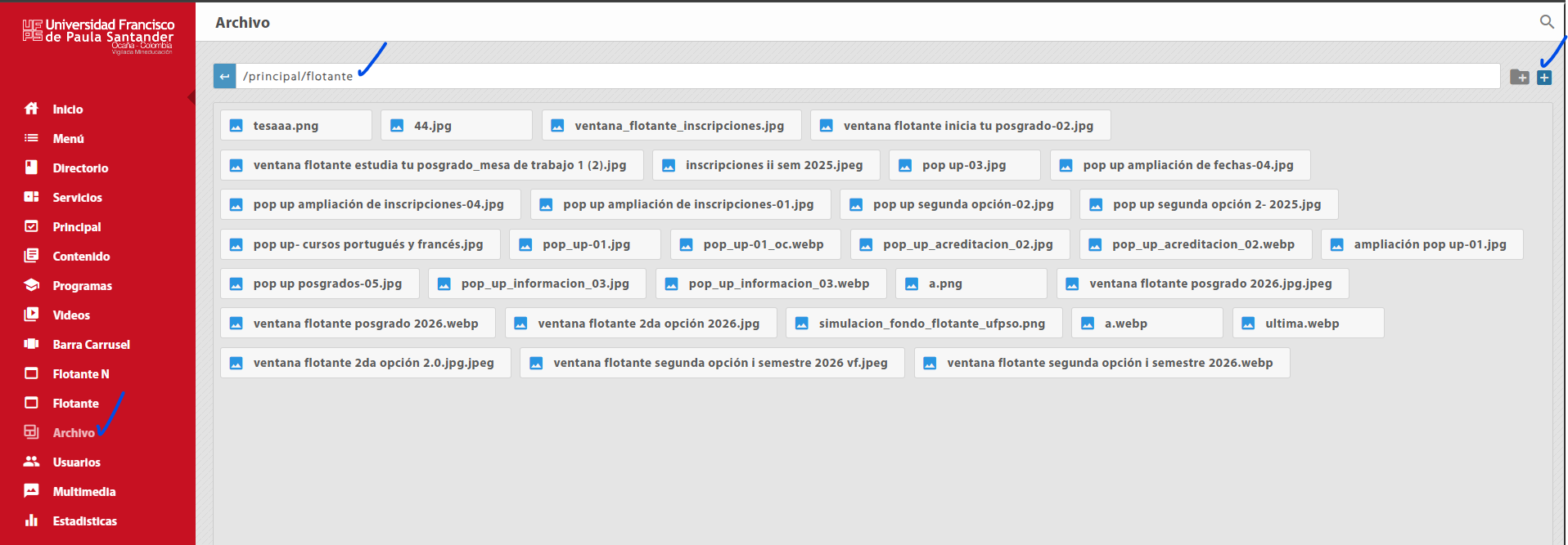 - Las imágenes deben subirse exclusivamente en la siguiente carpeta: ( Archivo/principal/flotante ).