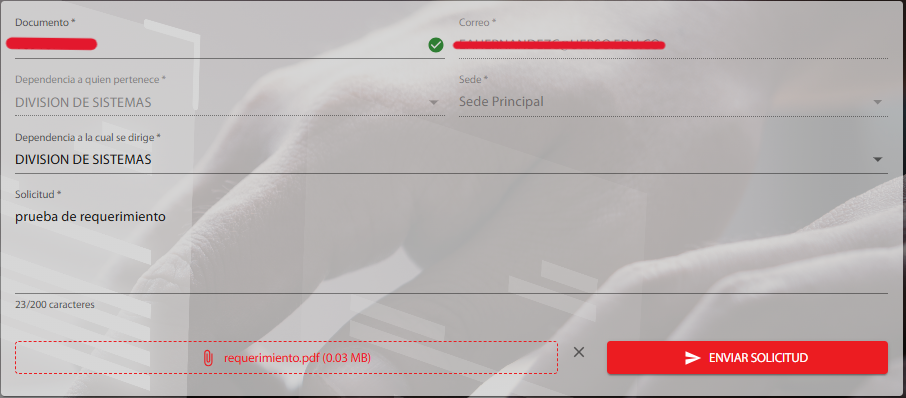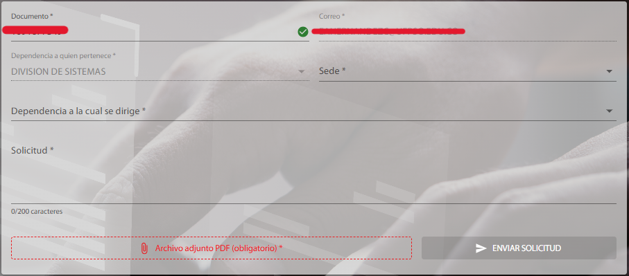 Hasta que no llene todos los datos, no le dejara enviar la solicitud