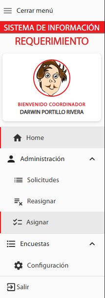 - Administración: Como jefe de la dependencia, podrá ver, asignar y reasignar las solicitudes llegadas por parte de las demás dependencias.