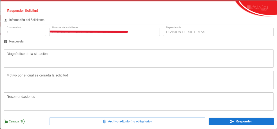 En el botón de Ver/Responder le aparecerá un apartado con la Respuesta del funcionario asignado, o en caso que no haya respuesta, puede responderla el mismo.