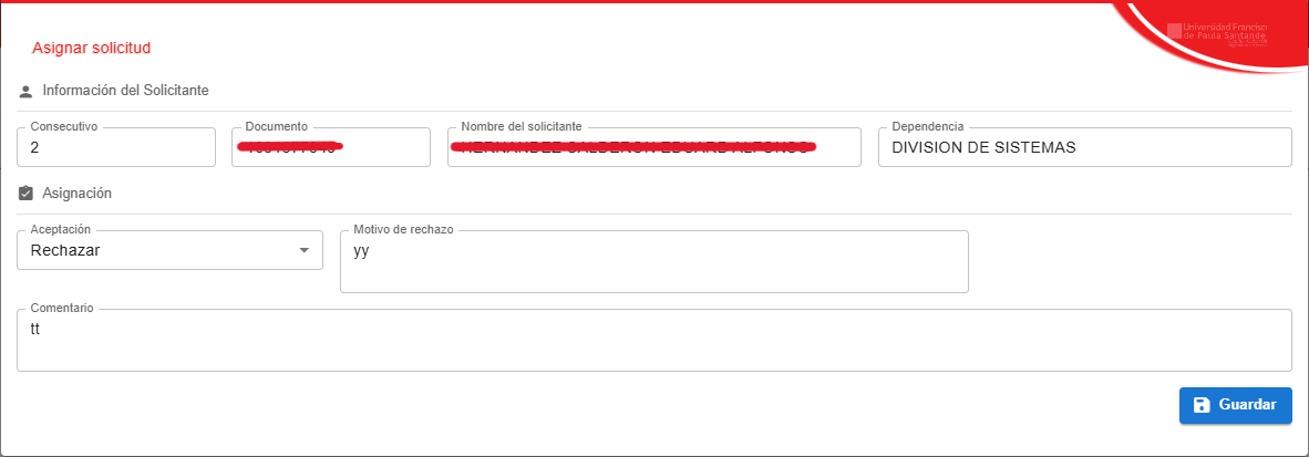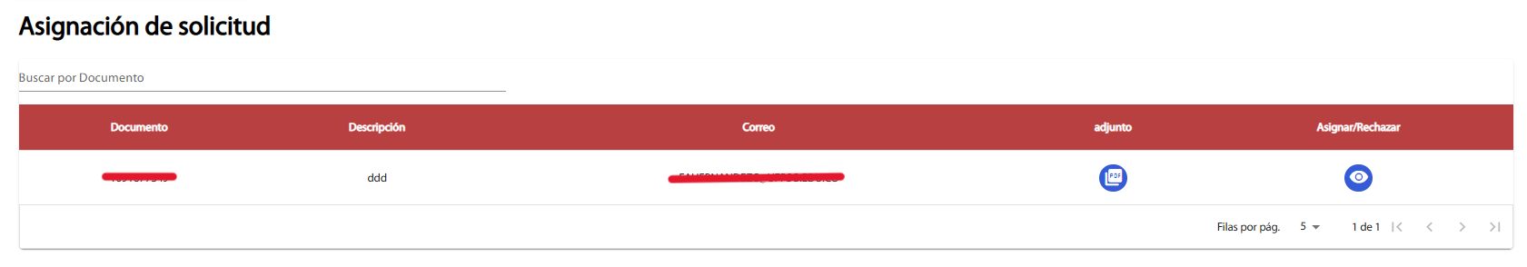 El en apartado de Asignar, el Usuario podrá asignar el requerimiento al funcionario que le corresponda o Rechazar el requerimiento si es necesario, de igual manera vera la misma información, lo único que cambia es el botón por Asignar/Rechazar.