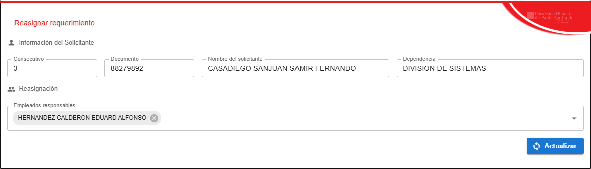 Figura 16. Reasignar Requerimiento