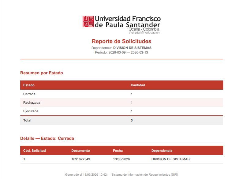 Figura 25. PDF Reporte de Solicitud por Estado